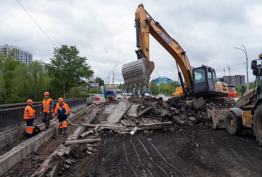 – На путепроводе проспекта Притомского мы продолжаем снимать бетонную стяжку экскаватором, вычищать уже до плит.