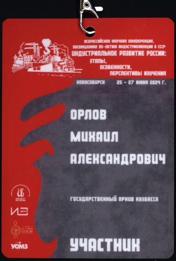 26 июня 2024 года главный археограф Государственного архива Кузбасса М. А. Орлов принял участие во всероссийской научной конференции «Индустриальное развитие России: этапы, особенности, перспективы изучения»,
