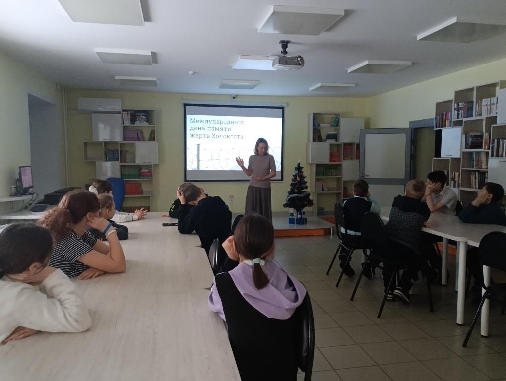 Школьники познакомились с Резолюцией Ассамблеи ООН, утверждающий Международный день памяти жертв Холокоста. Библиотекари объяснили ребятам, что означает слово «Холокост», и когда оно вошло в оборот для обозначения трагедии еврейского народа в годы Второй мировой войны.