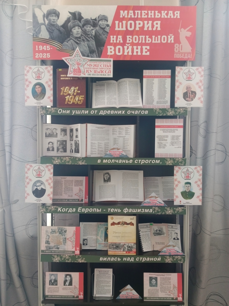 Выставка, посвященная 80-летию Победы и подвигу шорского народа в Великой Отечественной войне, оформлена в Центральной городской библиотеке.