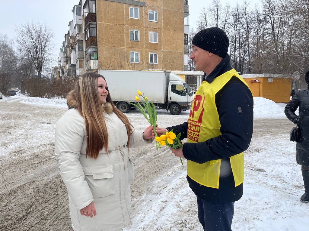 В Международный женский день депутат Кемеровского городского Совета народных депутатов, член Совета регионального отделения Социалистической партии «СПРАВЕДЛИВАЯ РОССИЯ – ПАТРИОТЫ – ЗА ПРАВДУ» Евгений Кулебакин организовал неформальное поздравление женщин на улицах города Кемерово.