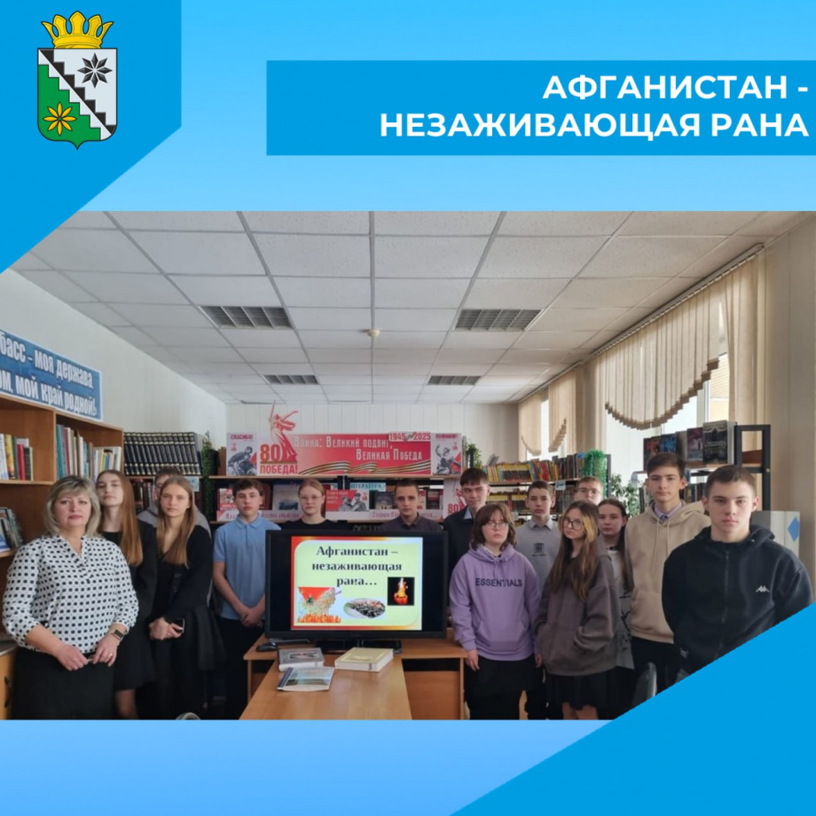 Сотрудники библиотеки рассказали учащимся школы о причинах афганской войны, о солдатах -земляках, принимавших участие в военных событиях в Афганистане. Вниманию гостей были предложены художественные и документальные книги, видеоролик и песни солдат афганской войны, передающие атмосферу того времени.