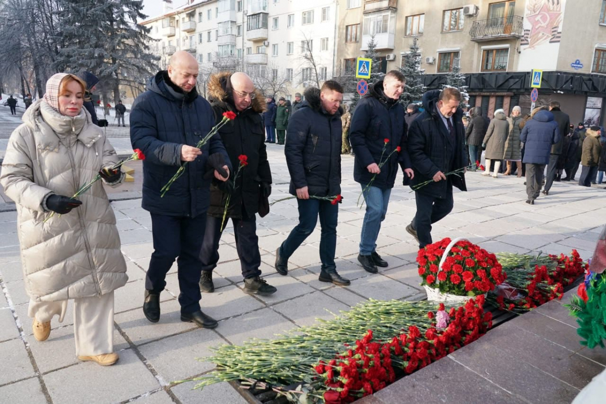 В преддверии Дня защитника Отечества сегодня в Кемерове состоялась церемония возложения цветов к памятнику воинам-кузбассовцам, павшим за Родину в 1941-1945 гг.