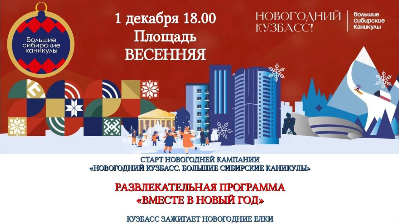 1 декабря в 18.00 на площади Весенней междуреченцев и гостей города ждёт развлекательная программа «Вместе в Новый год».